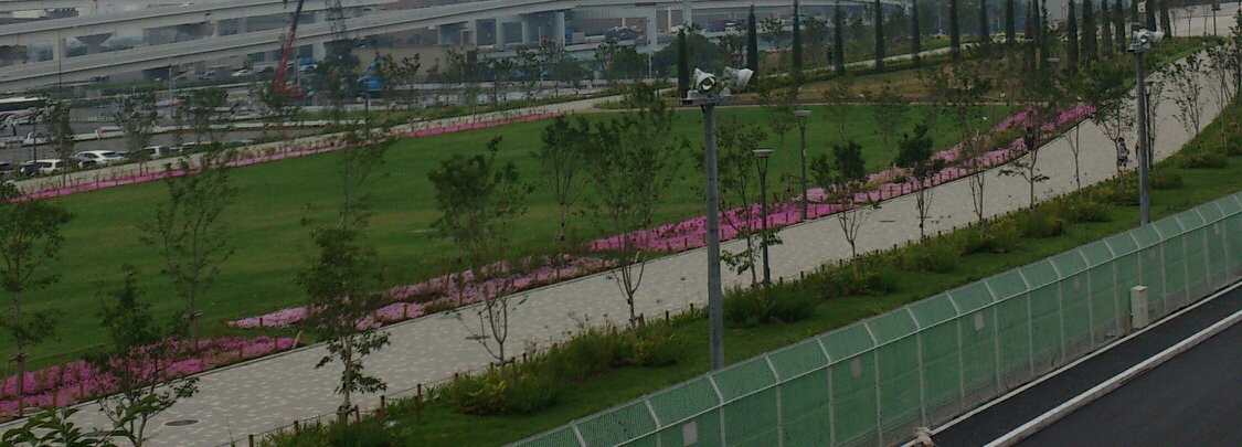 上手くお伝えできませんが、ピンクの花が植えられてて、花道みたいのが出来てました。