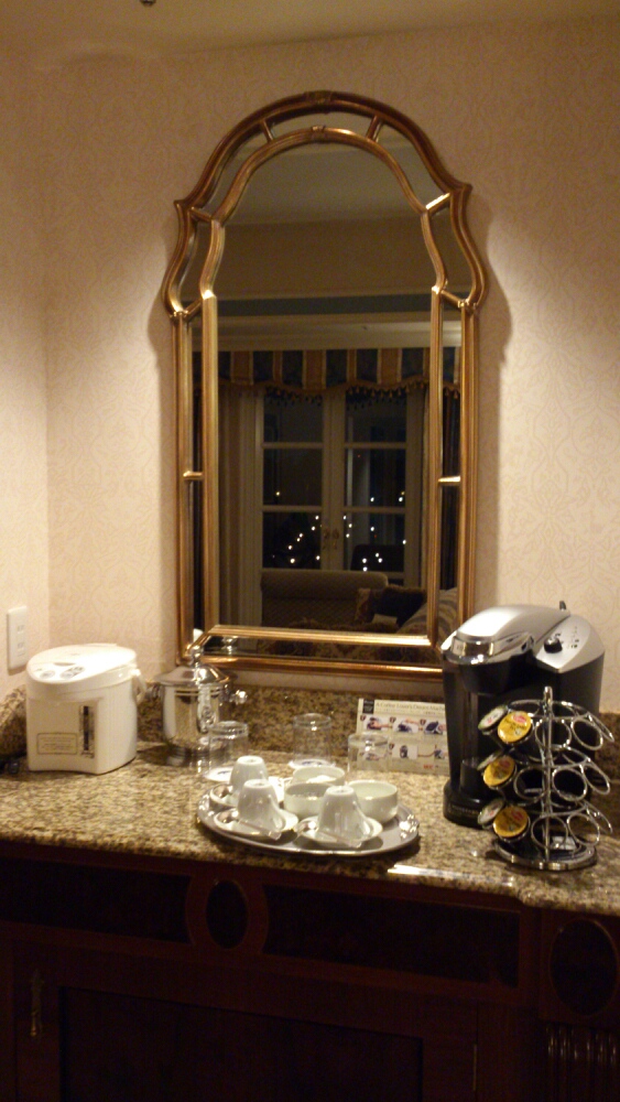 コーヒーコーナー。鏡越しに見える景色もまた良し。