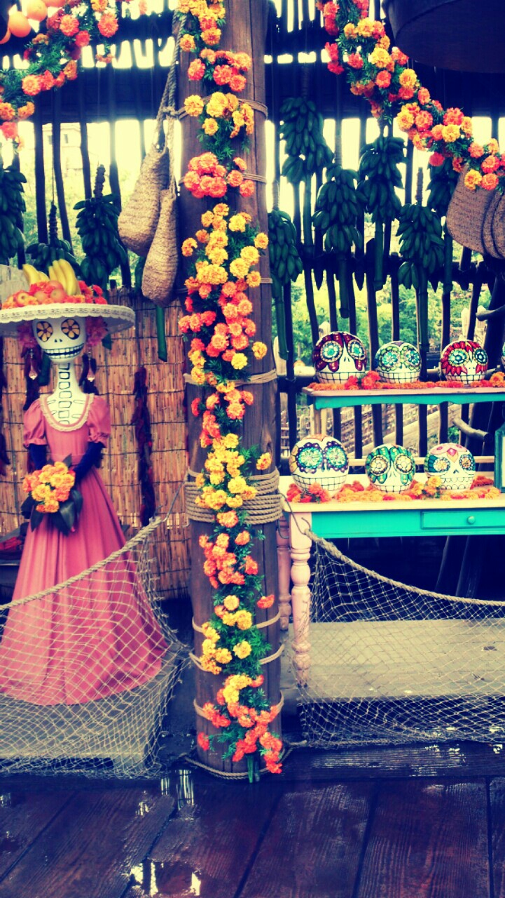 雰囲気的に普通に骸骨とかある地域なので、そういうテイスト込みのハロウィン仕様ですね。南米の友達みたいに南米のハロウィン?