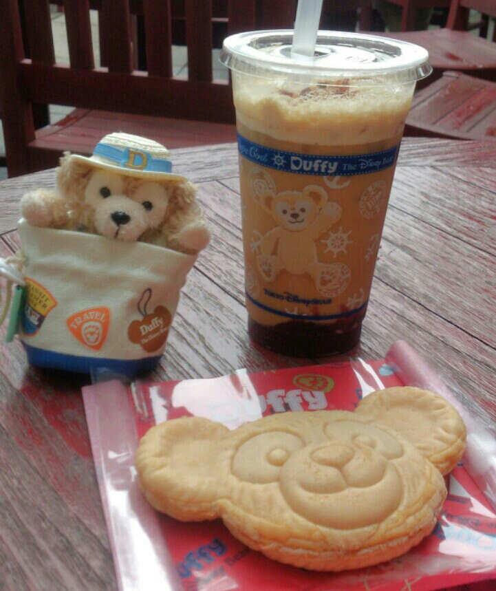 風景の写真を撮りつつ、ハッピーダッフィーとミルクティーでひとやすみ。
