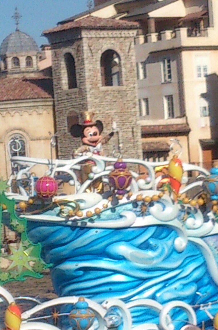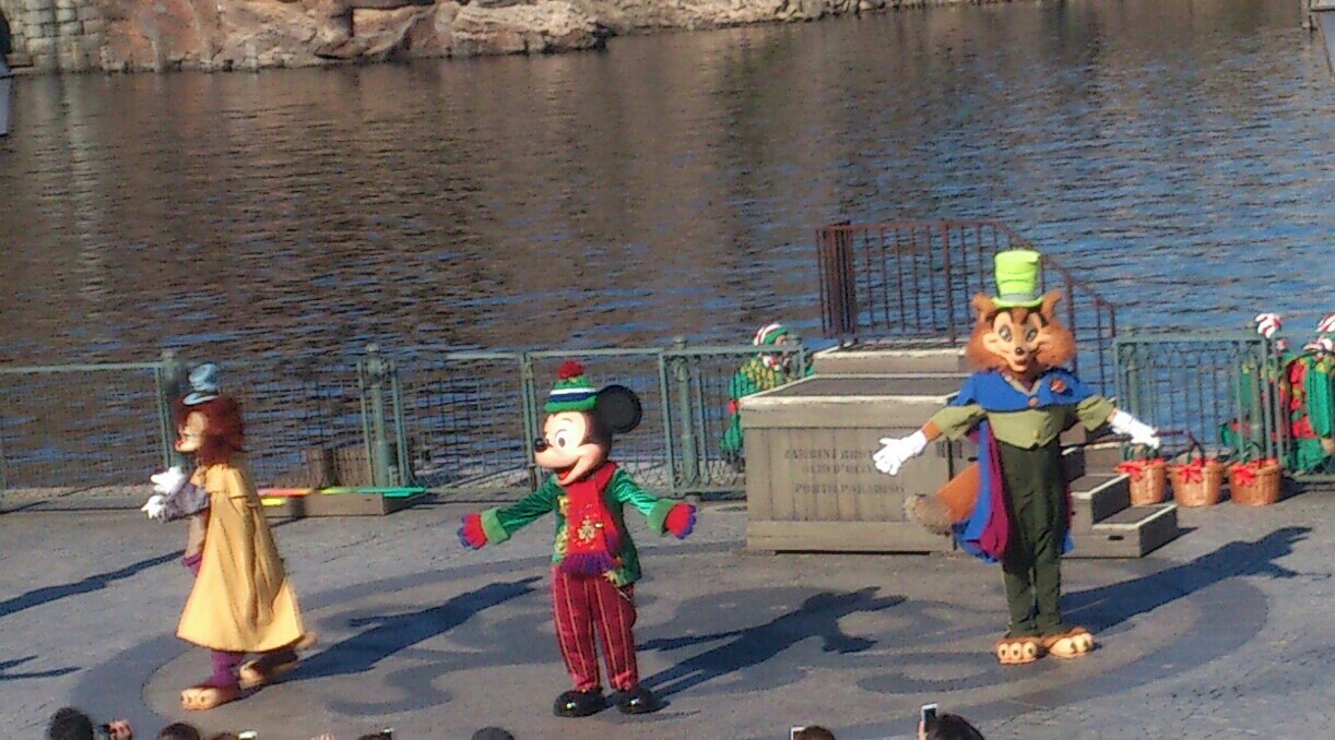「お祝いするのはクリスマスだけじゃないんだよ」とされ、ミッキーがミキ広で早着替えをして、またリドに帰ってきました。