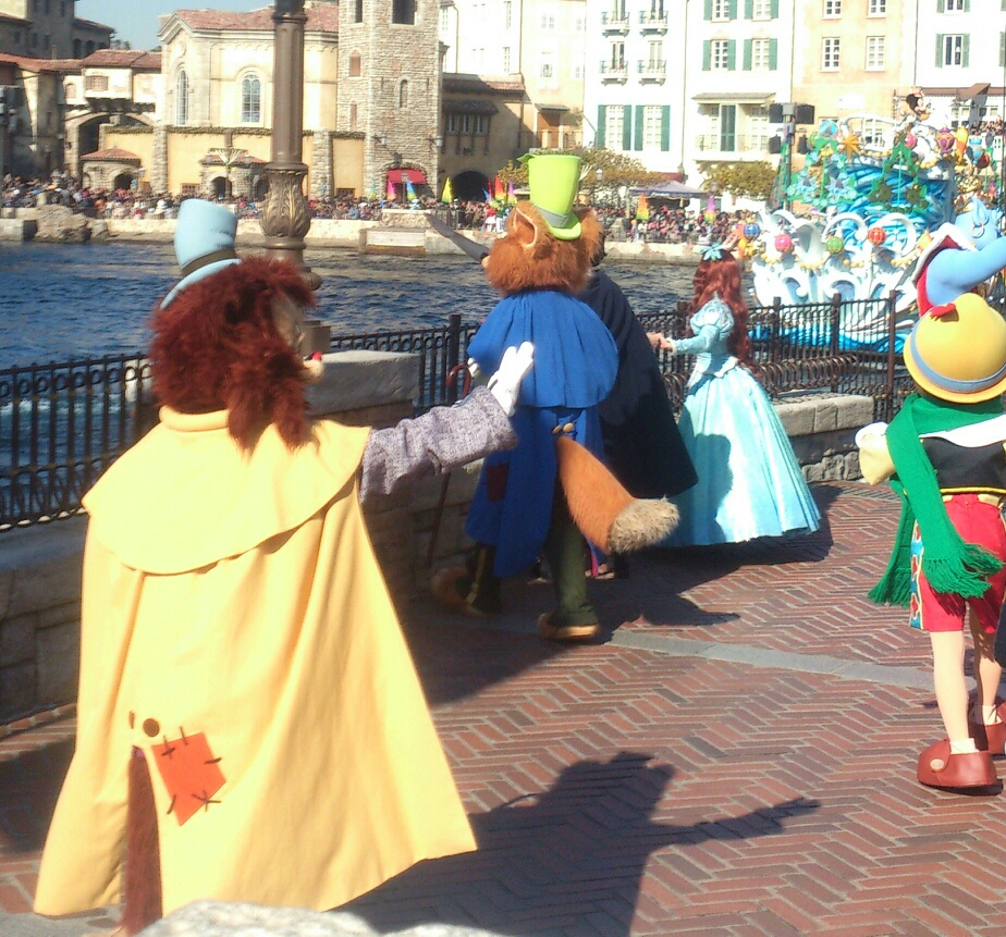 ピノキオファミリーと仲良く踊っています。こうして見るとすごくいい人たちのよう。実際いい人たちでしたね。