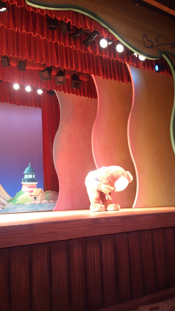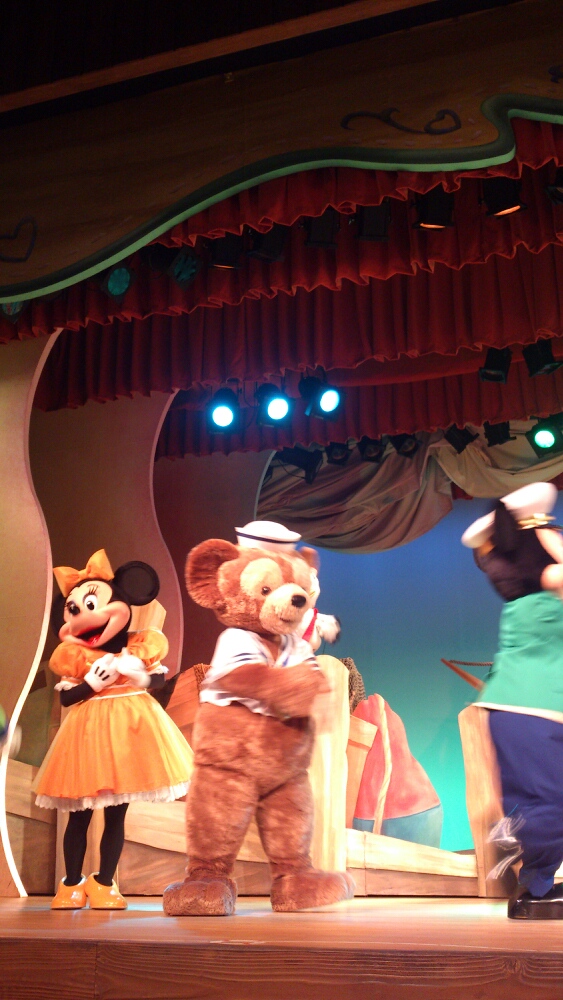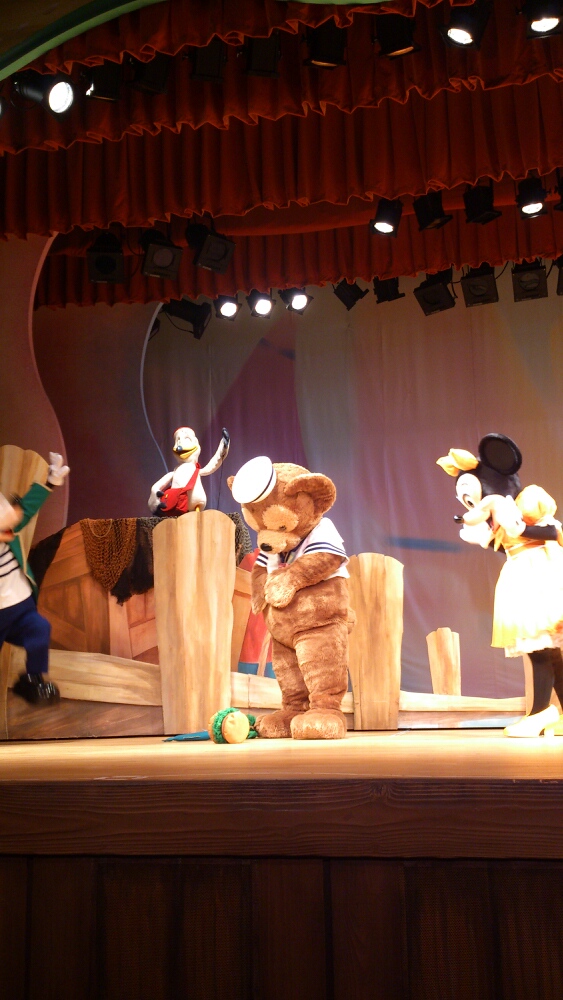 頭入っちゃったけど、このダッフィーもかわいい。さぁ出発だ、ということのようです。
