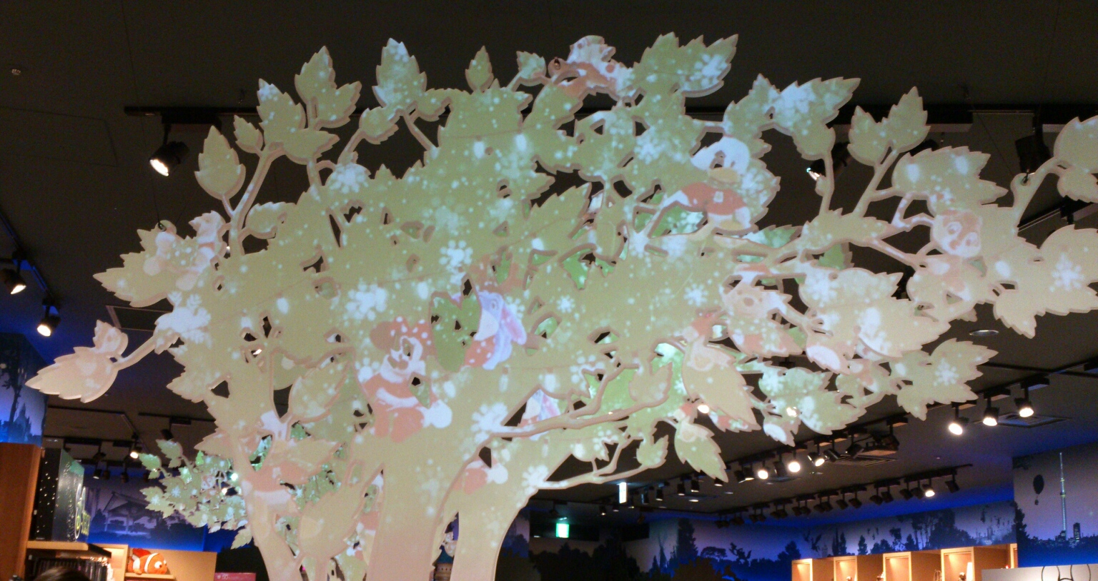 お店に入るとまずこの木に出迎えられます。映像に合わせて、メリーポピンズの「チムチムチェリー」という曲が流れてました。