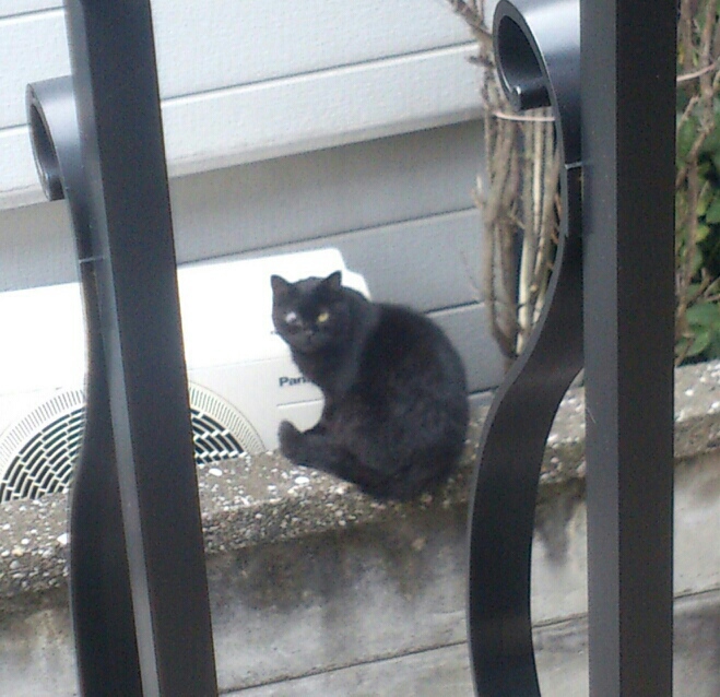 途中で向かいに猫がやって来てました。