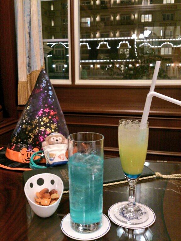 黄色がノンアルコールカクテルで「キャッスル・リフレクション」、青いのがオリジナルカクテルが「アズール」です。