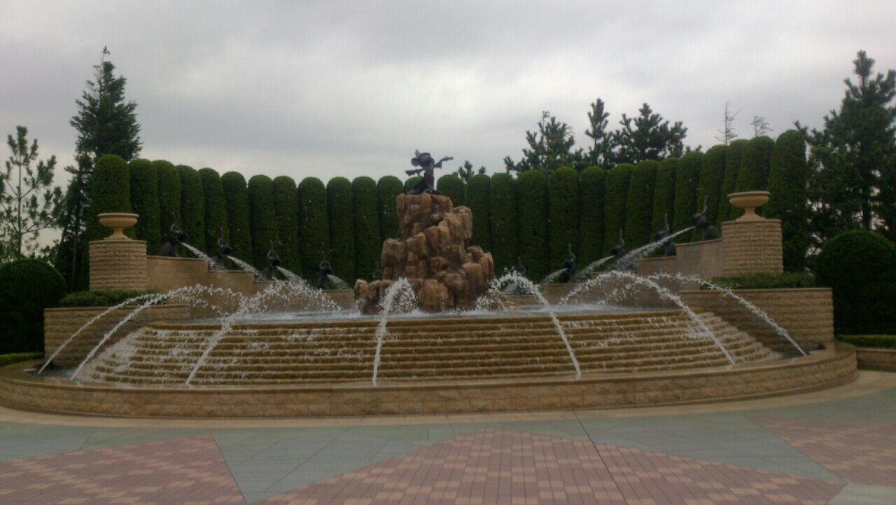 ランドは魔法やファンタジーの国のため、ランドホテルも魔法使いの弟子を飾るのでしょうか。ミッキーの周りには例の水汲みをするほうきたちです。