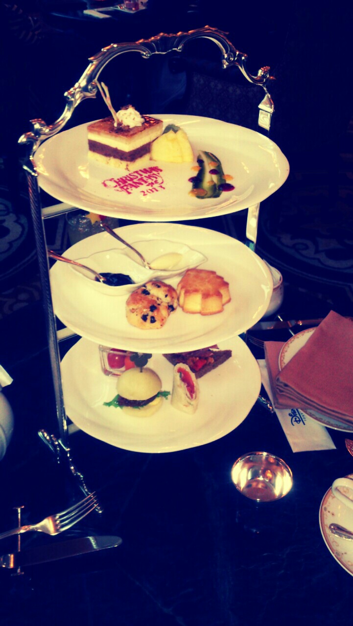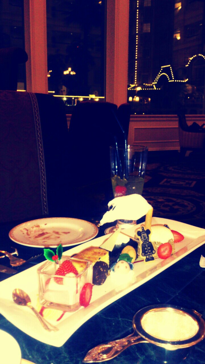 赤い粉砂糖みたいので「クリスマスファンタジー」と書かれています。右にはソースで出来たツリーが。
