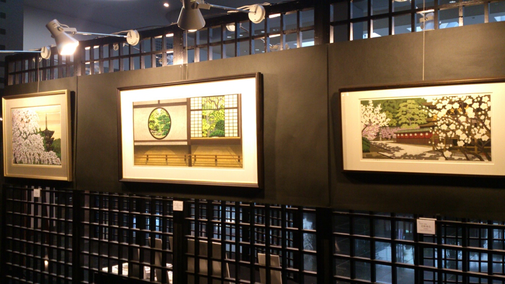 外国人観光客へのサービス(?)なのか、版画で京都の風景を描いてる絵のギャラリーのコーナーもあります。失礼ながら普通に作品のクオリティが高い。写真か。