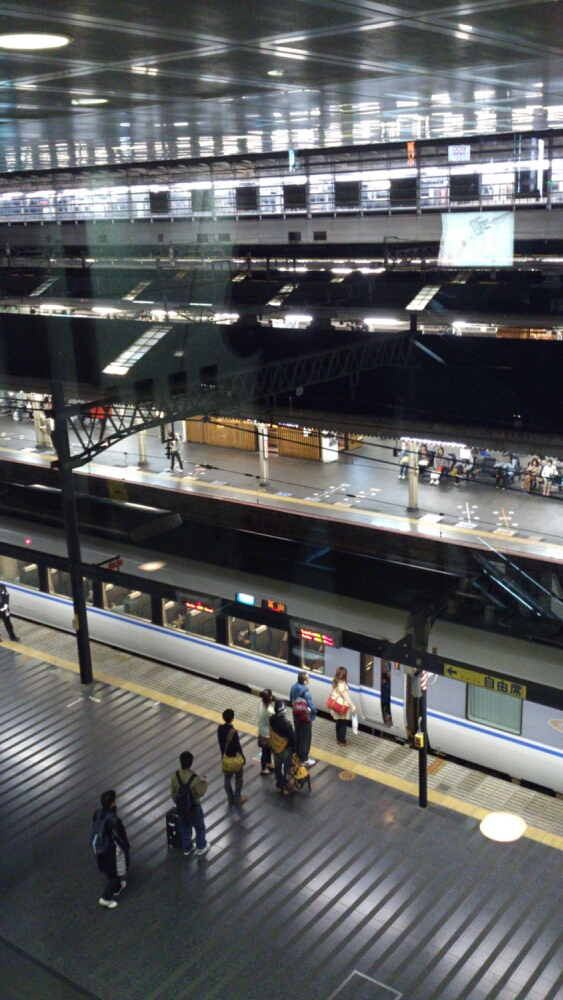 このちょっとした空中通路みたいの、面白い。ホームと電車と改札が見える。上から眺められて偉い人みたいよ。