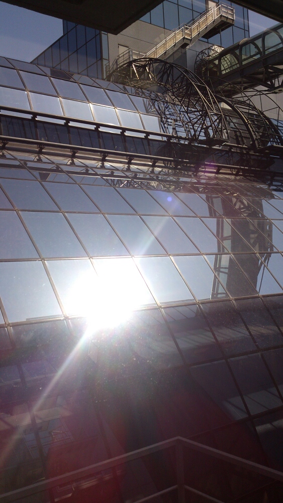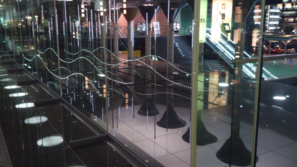 夜は外のモニュメントもピカピカ光る。