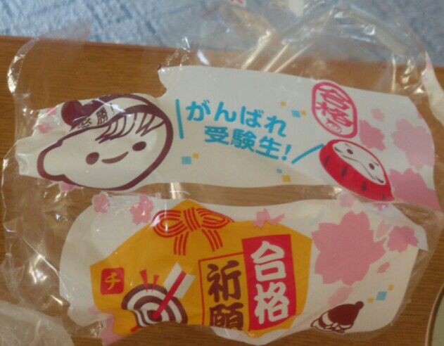 朝食は相方の得てくれたマルジュウベーカリーや受験生応援ver.のちー坊です。