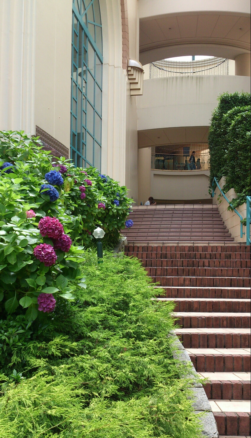 6月なのもあり、紫陽花がとてもきれいよ。その辺の道端にある色と違うはっきりした色。紫陽花の品種というか、銘柄とかあるのかな。