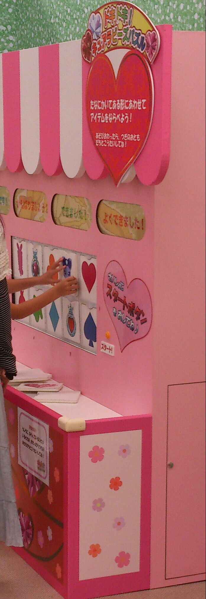 相方が背中を押してくれて、DSのゲームの体験版で遊べました。各キャラのダンスを見ながらの音ゲーと妖精のもぐら叩きでした。あれはかくれんぼじゃないよねw