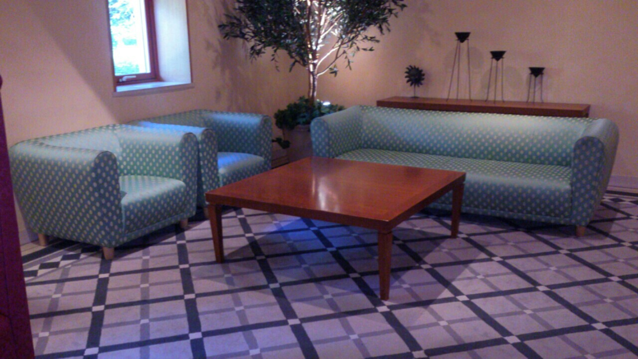 フロントの前に様々な種類のお待ち椅子が用意してあります。