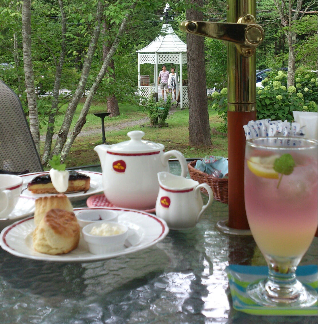 ブラックティーと、それに合うとても甘いケーキがありました。スコーン美味しかった。クリームも回収出来ました。